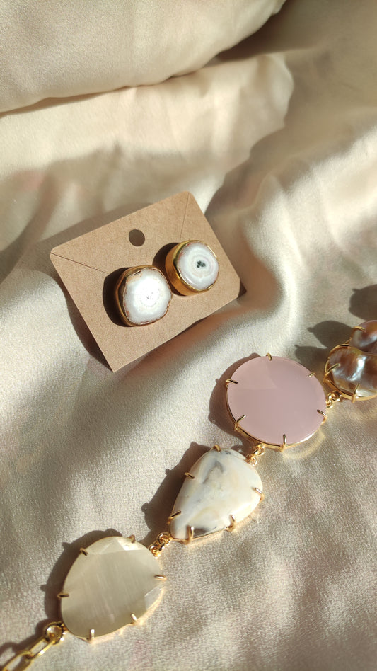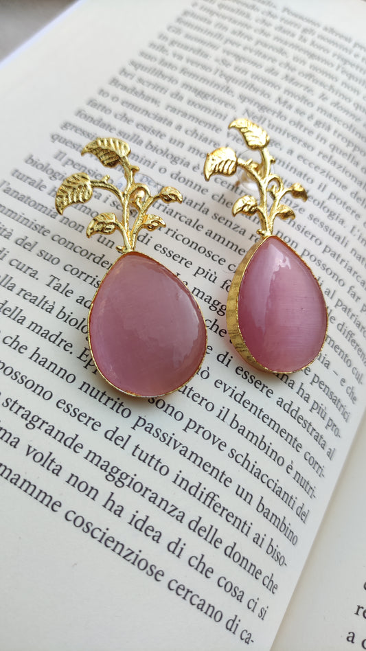 Set choker, anello e orecchini in agata e pietre dure rosa