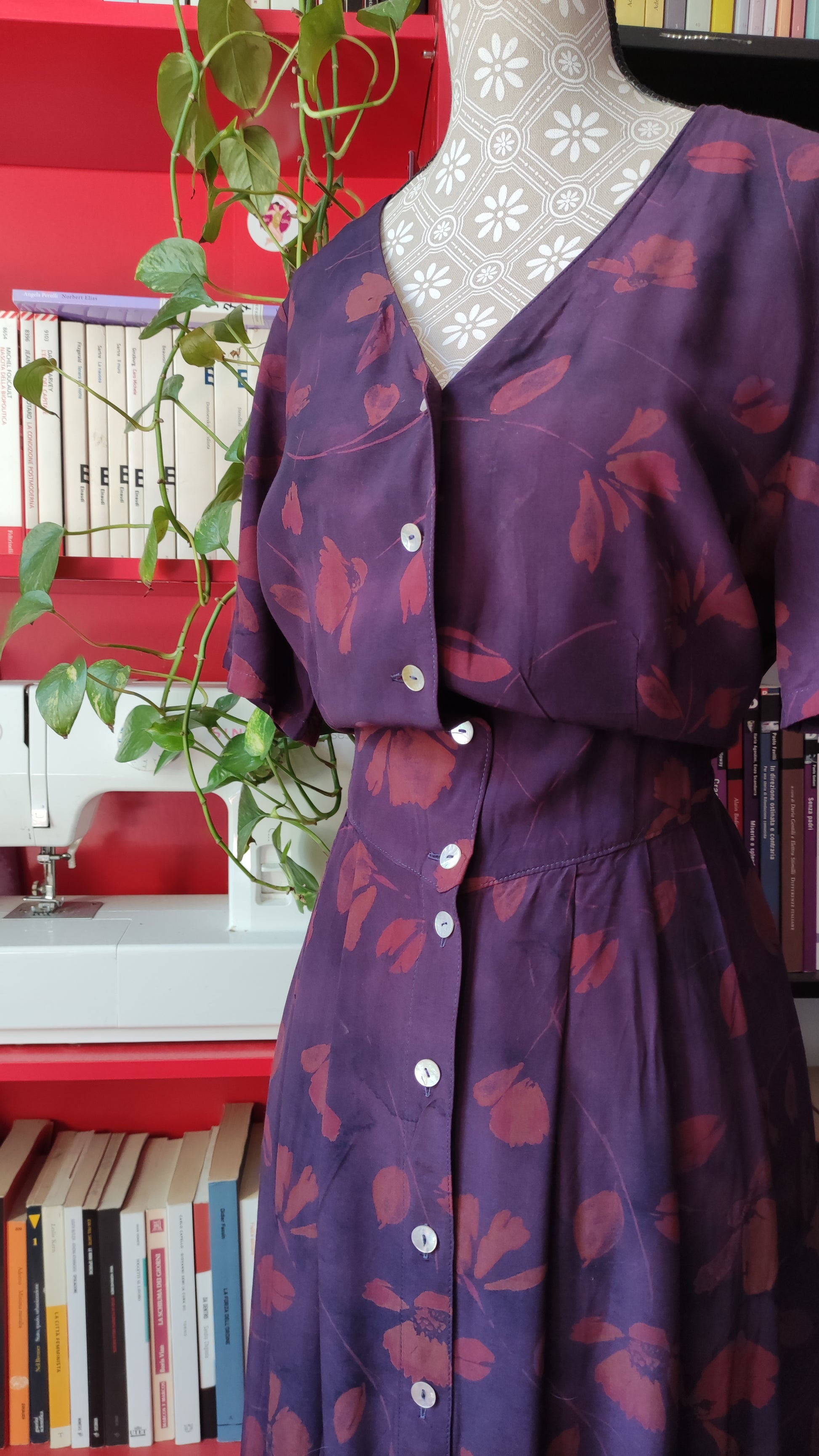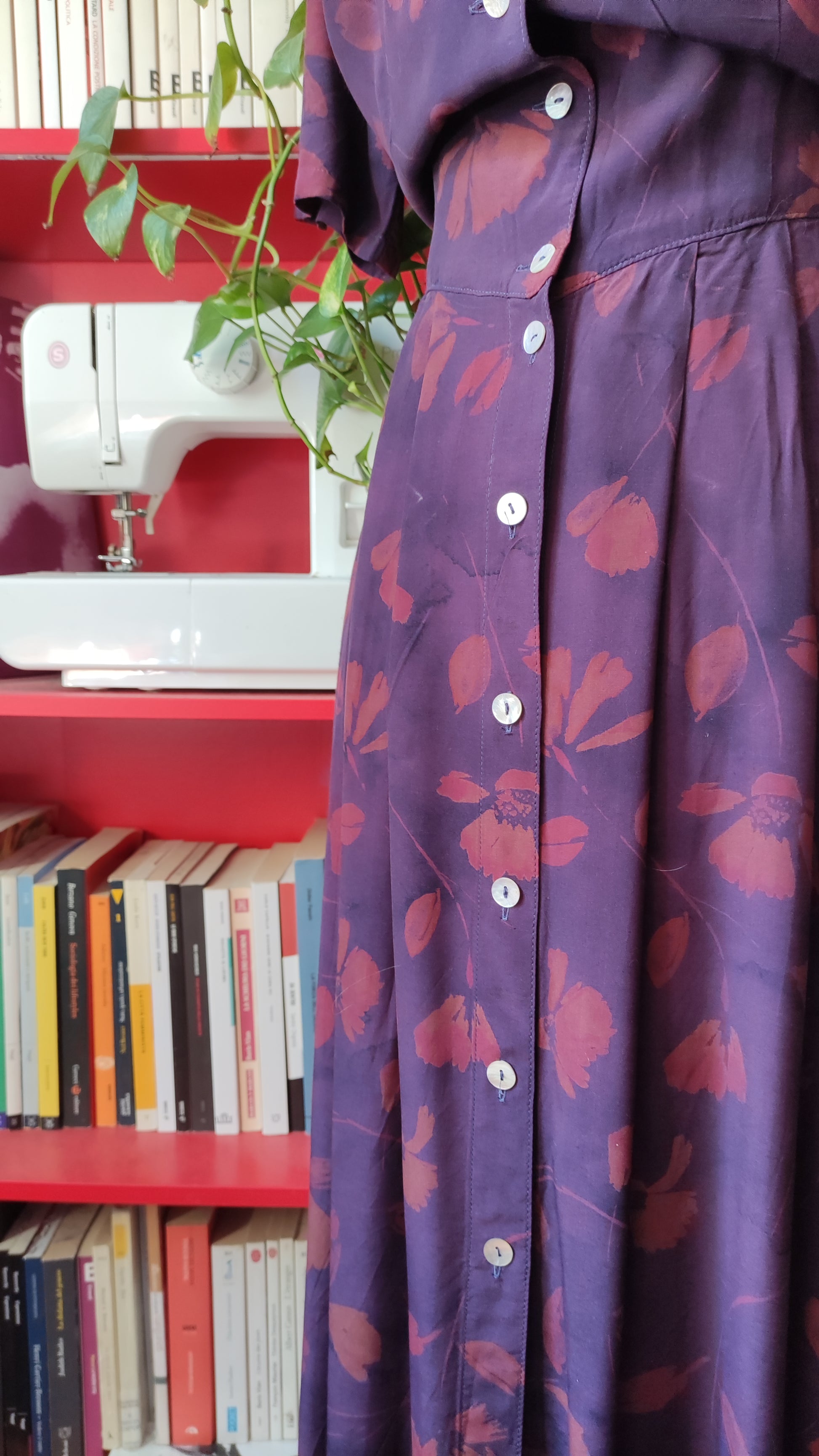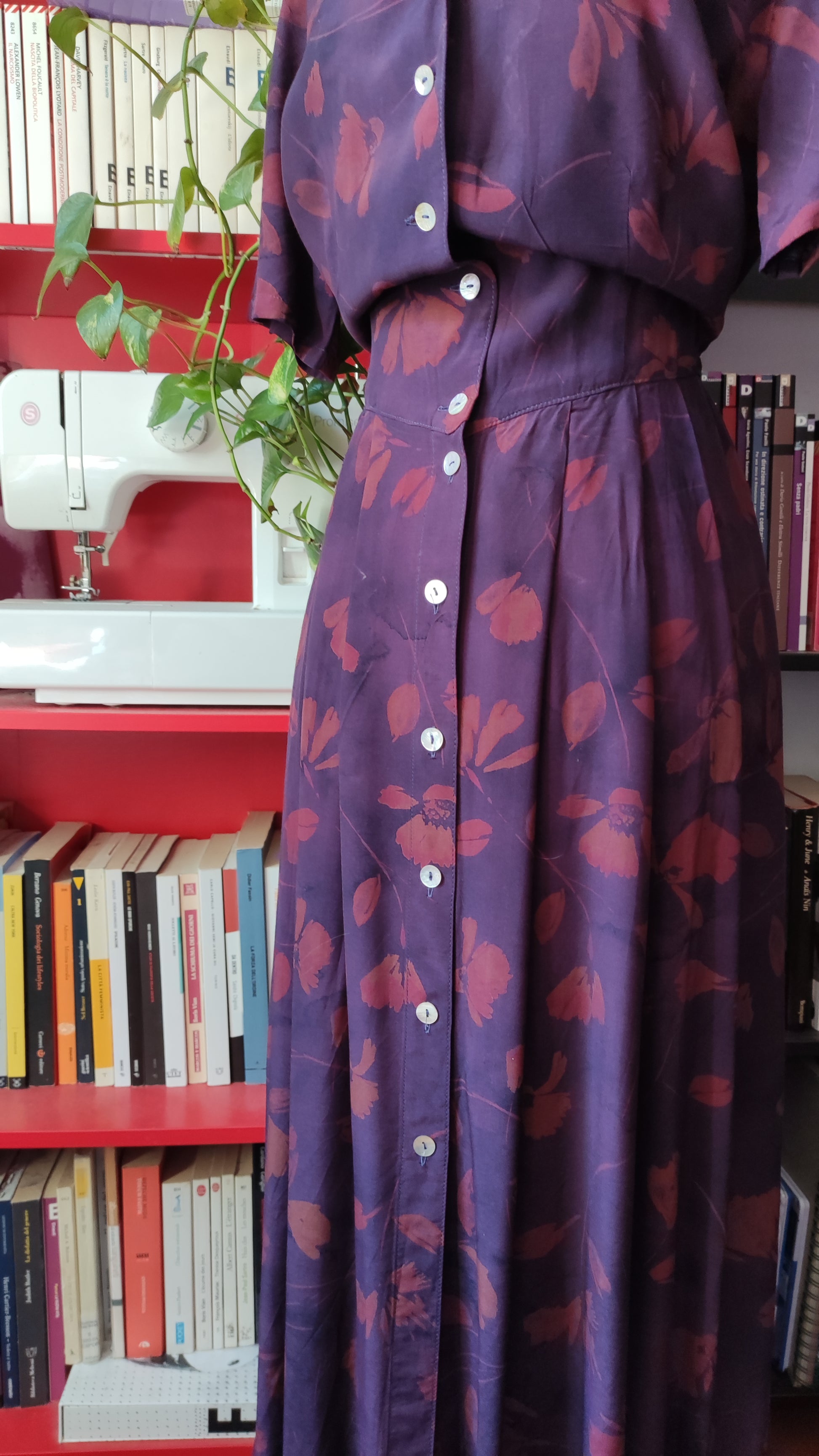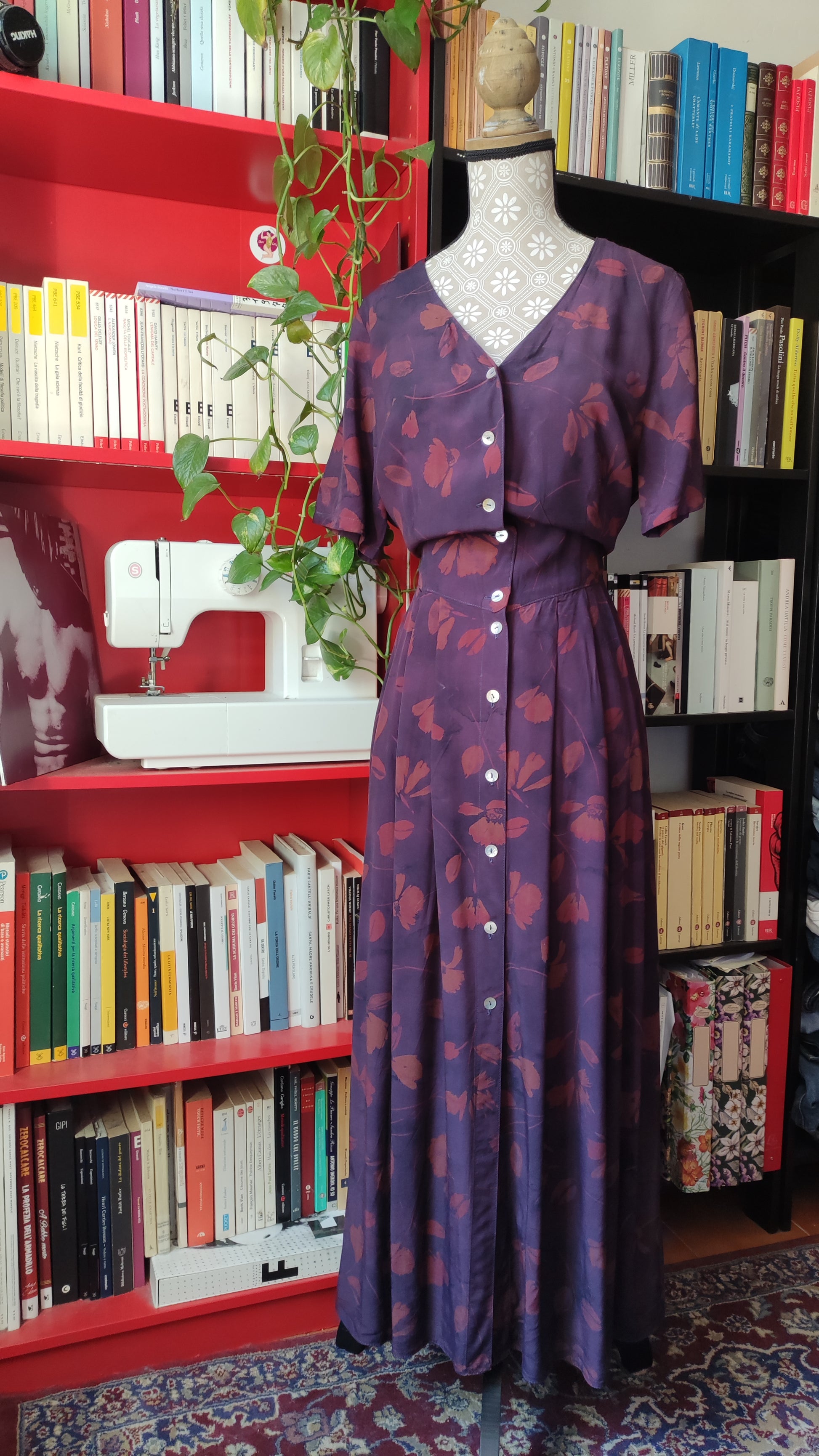 In freschissima viscosa, ha i bottoni in madreperla su tutta la lunghezza. Il nastro sulla vita permette di regolarlo e si può allacciare sia sul retro che sul davanti. Spacchi laterali. Segna una 46 ita ma veste meno. Vita max 78 cm. Lo consiglio a una M