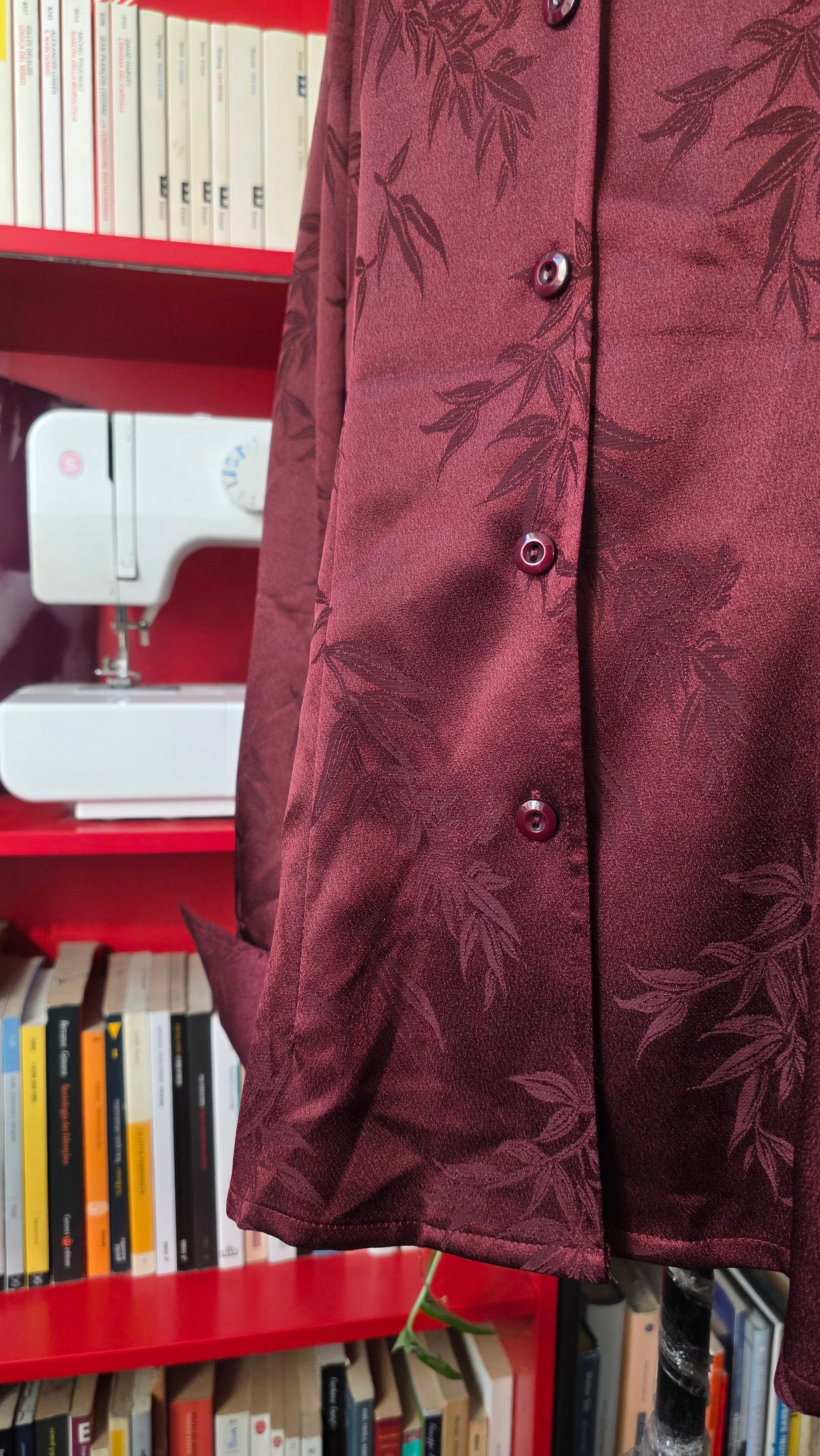 Segna una 50 ma veste meno, consiglio fino a una S. In poliestere pesante, strutturata, fantasia tono su tono. Spalline imbottite removibili. Ottime condizioni vintage