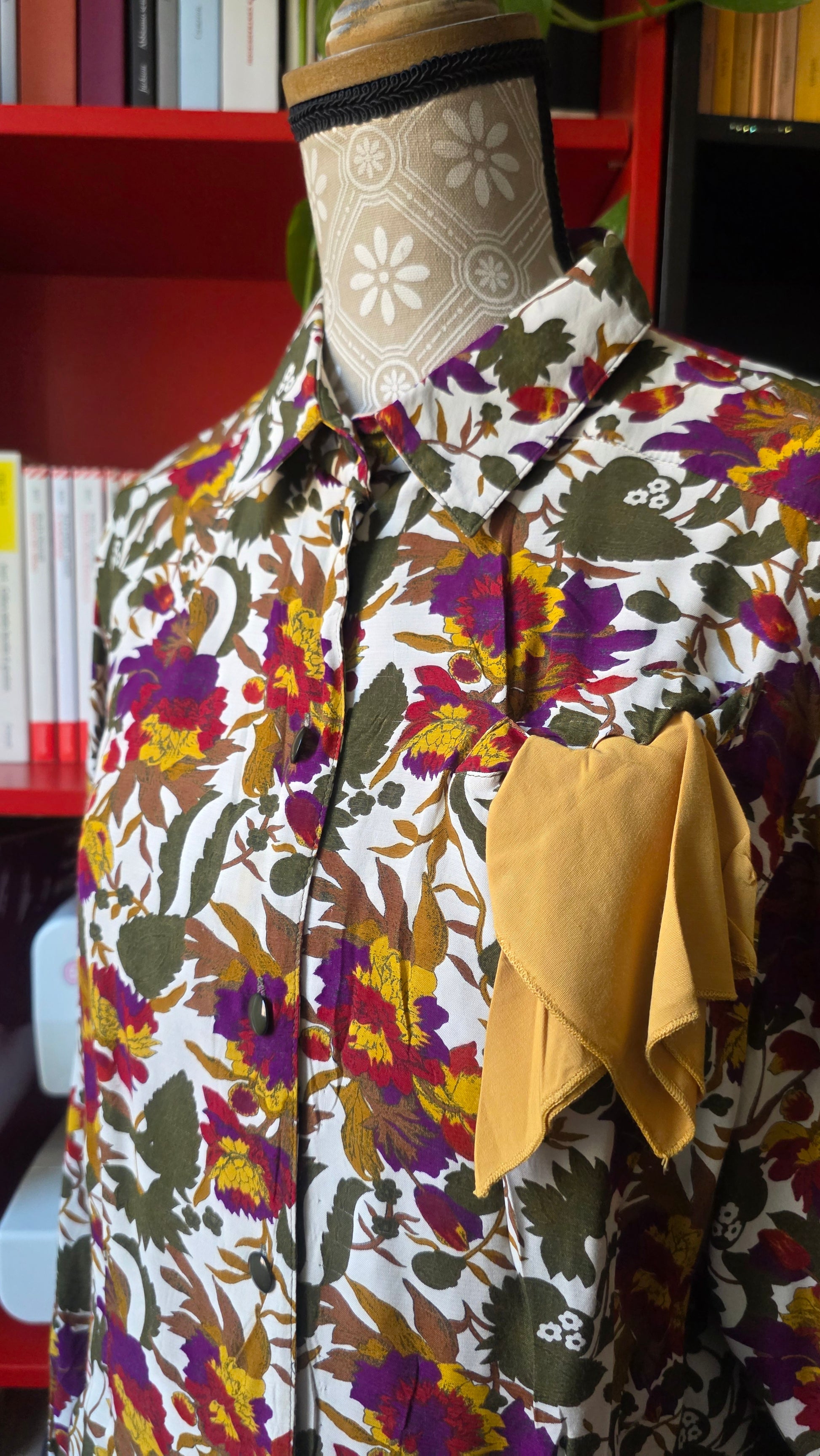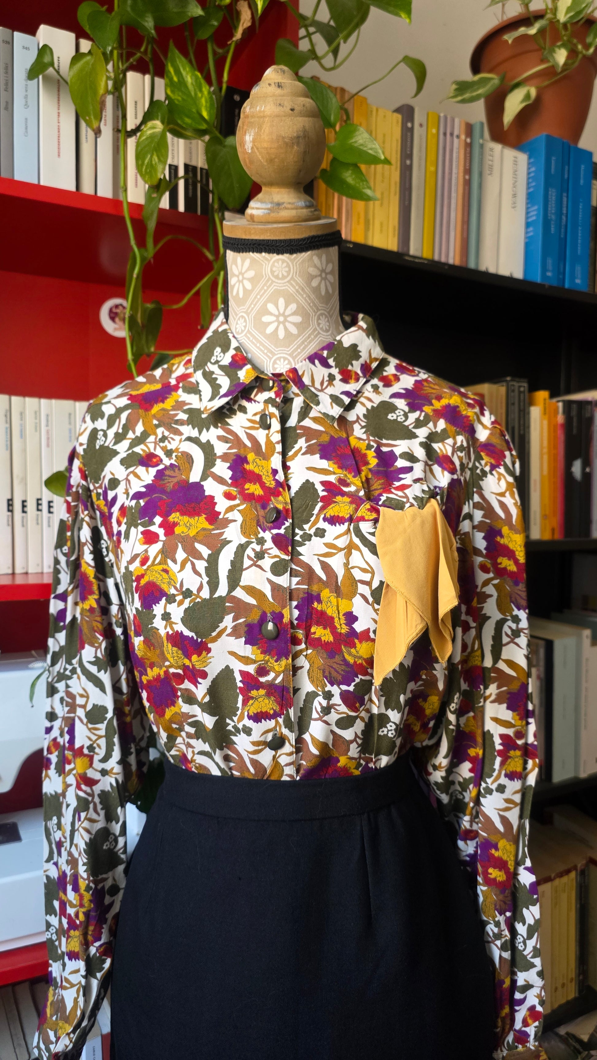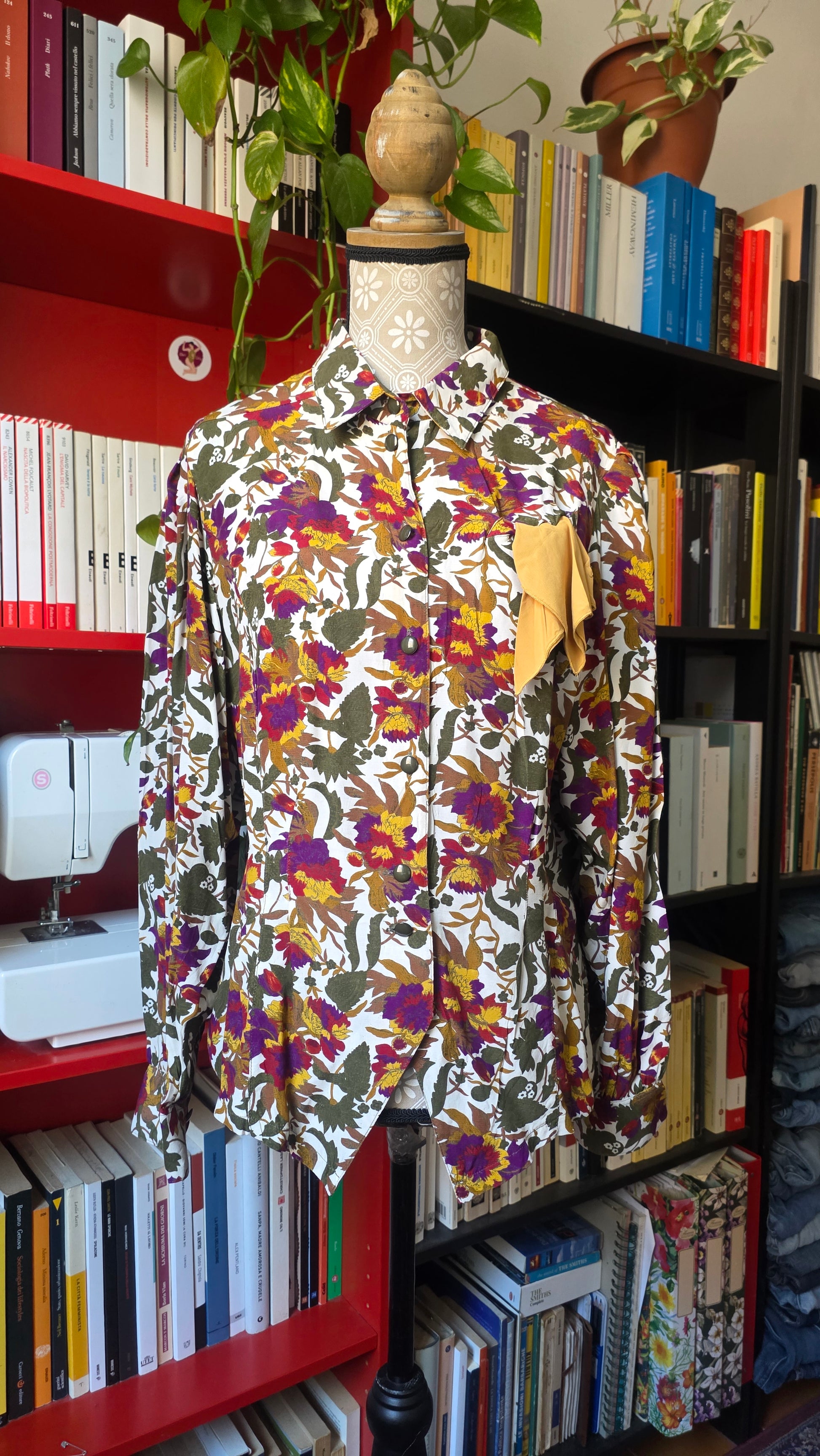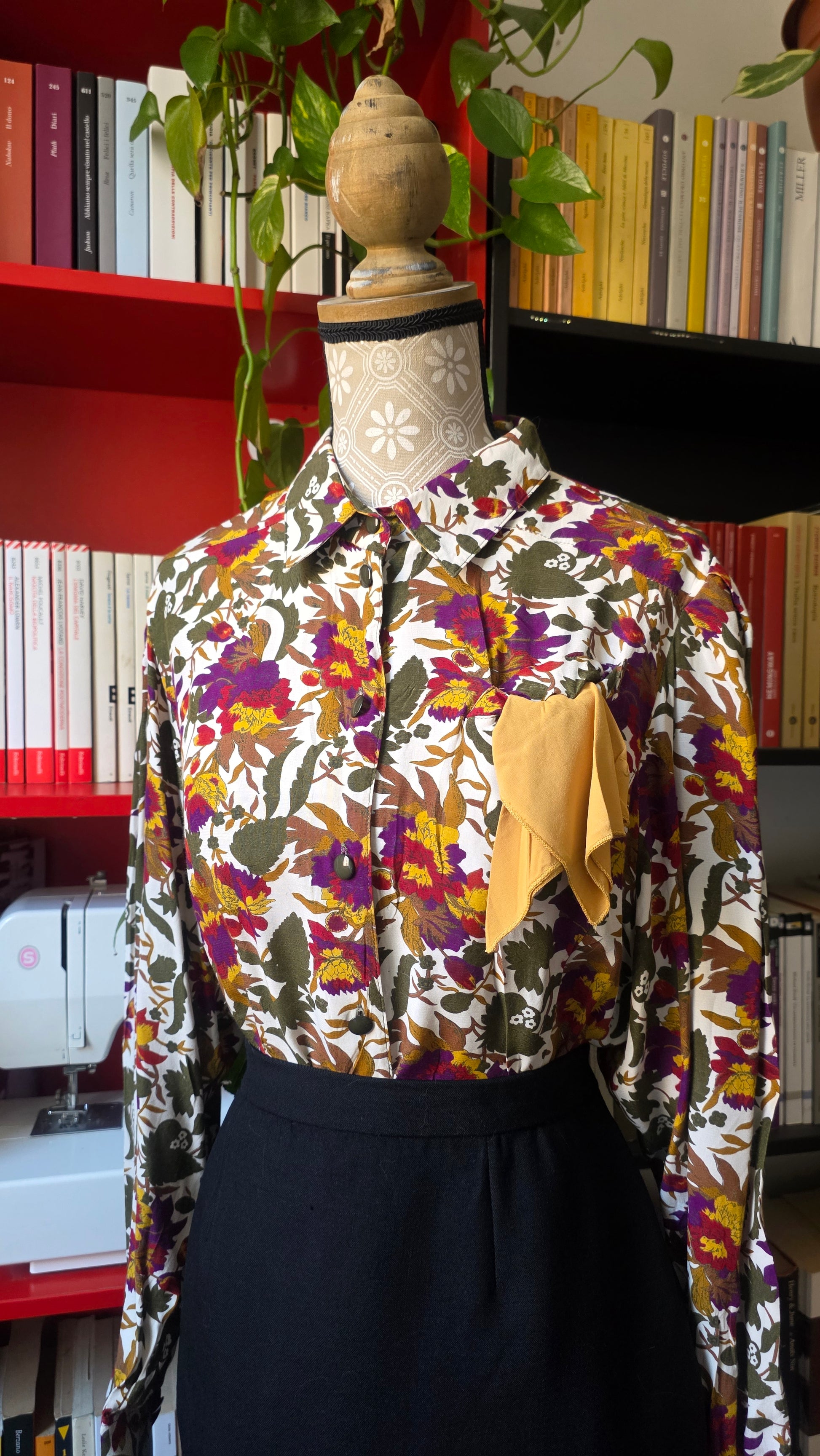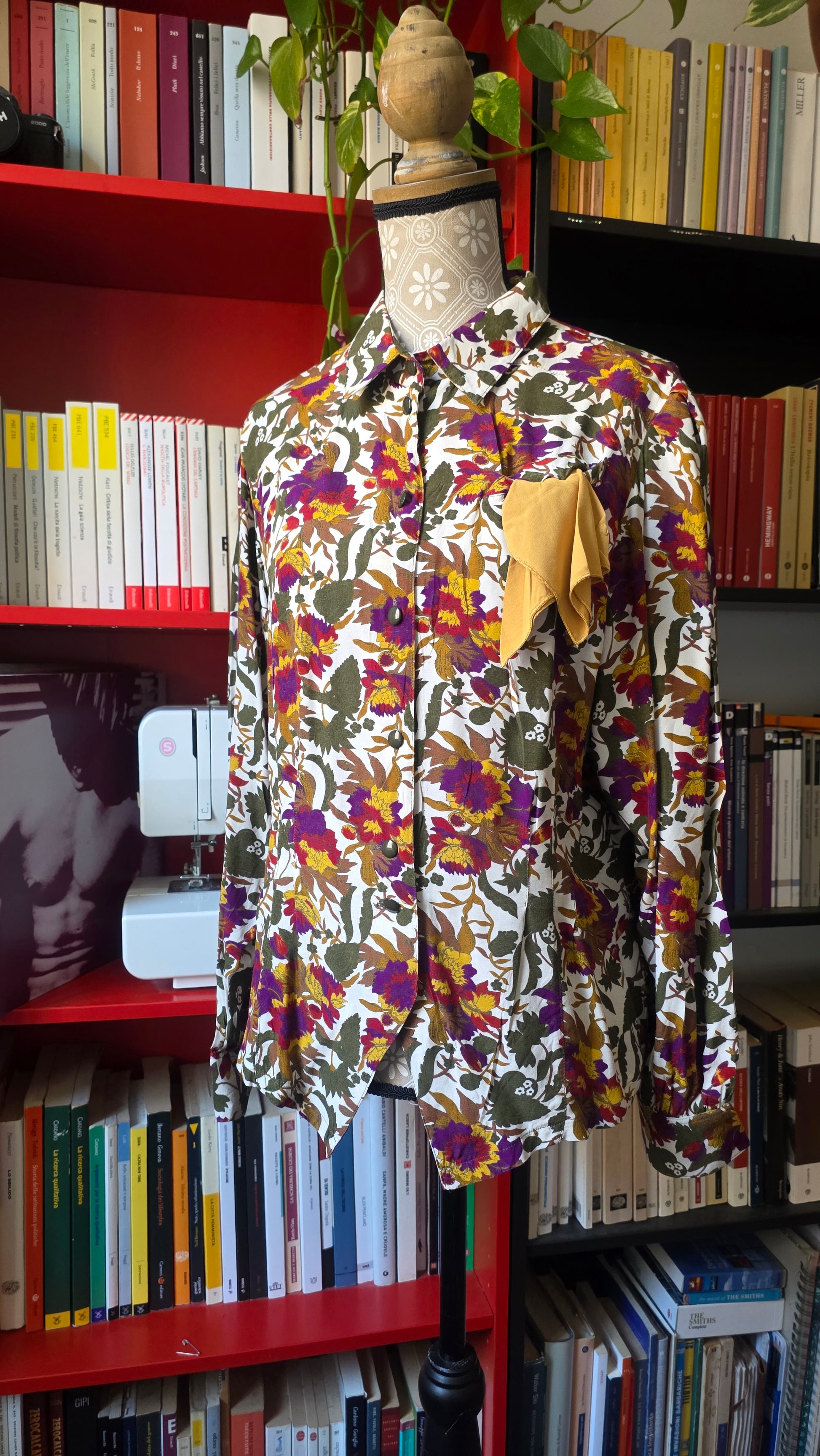 In viscosa, in ottime condizioni vintage. Segna una 40. Veste bene fino a una M.