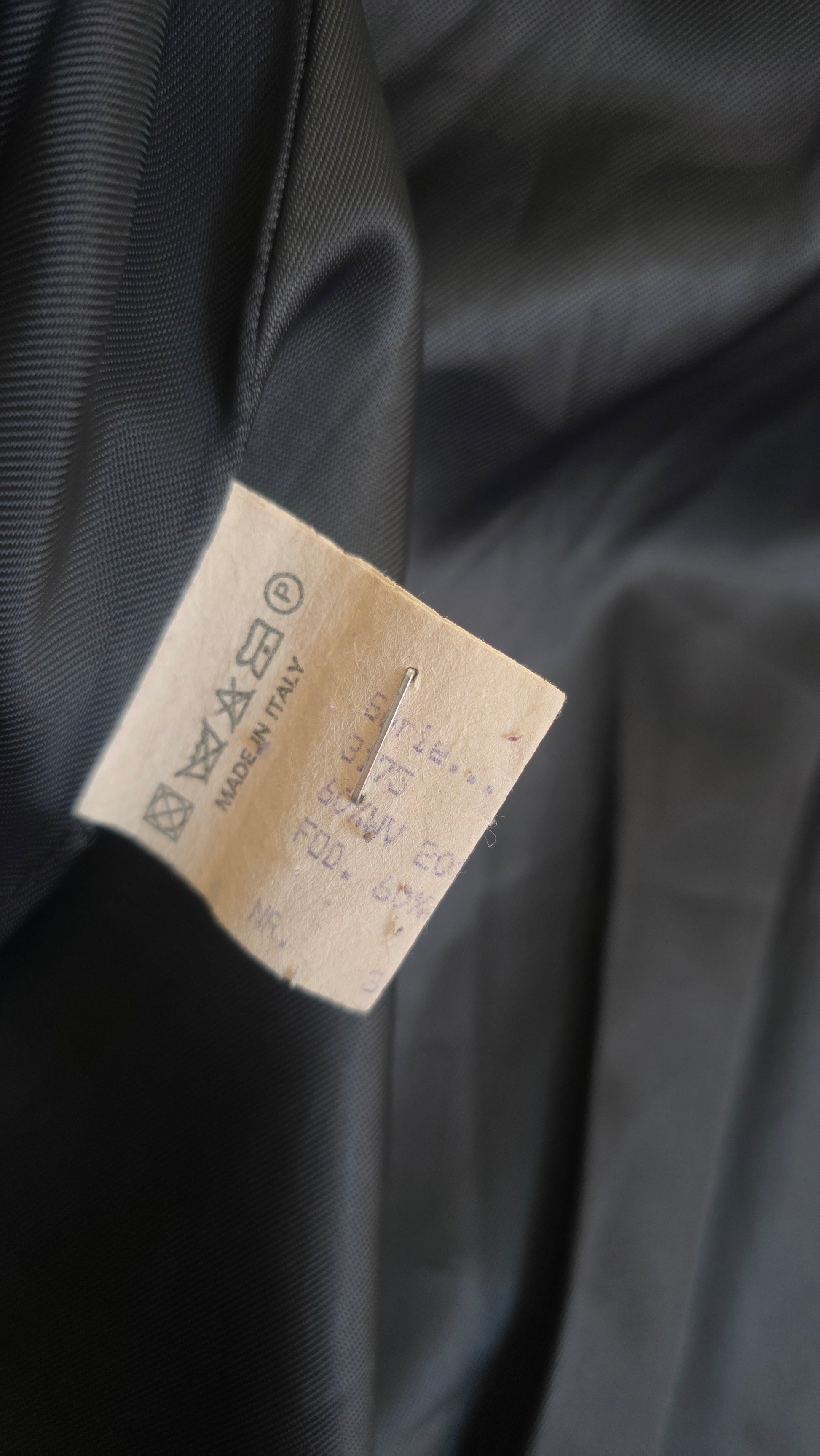 In 60% lana, 20% cashmere, 20% nylon. Caldissimo e leggero. Spalle raglan leggermente imbottite, tasche sul davanti, colletto tondo. Segna una 44 ma veste bene già da una 40 con vestibilità leggermente oversize. Ottime condizioni vintage, unico difetto nell'ultima foto. Il colore è un grigio sicurissimo, quasi nero