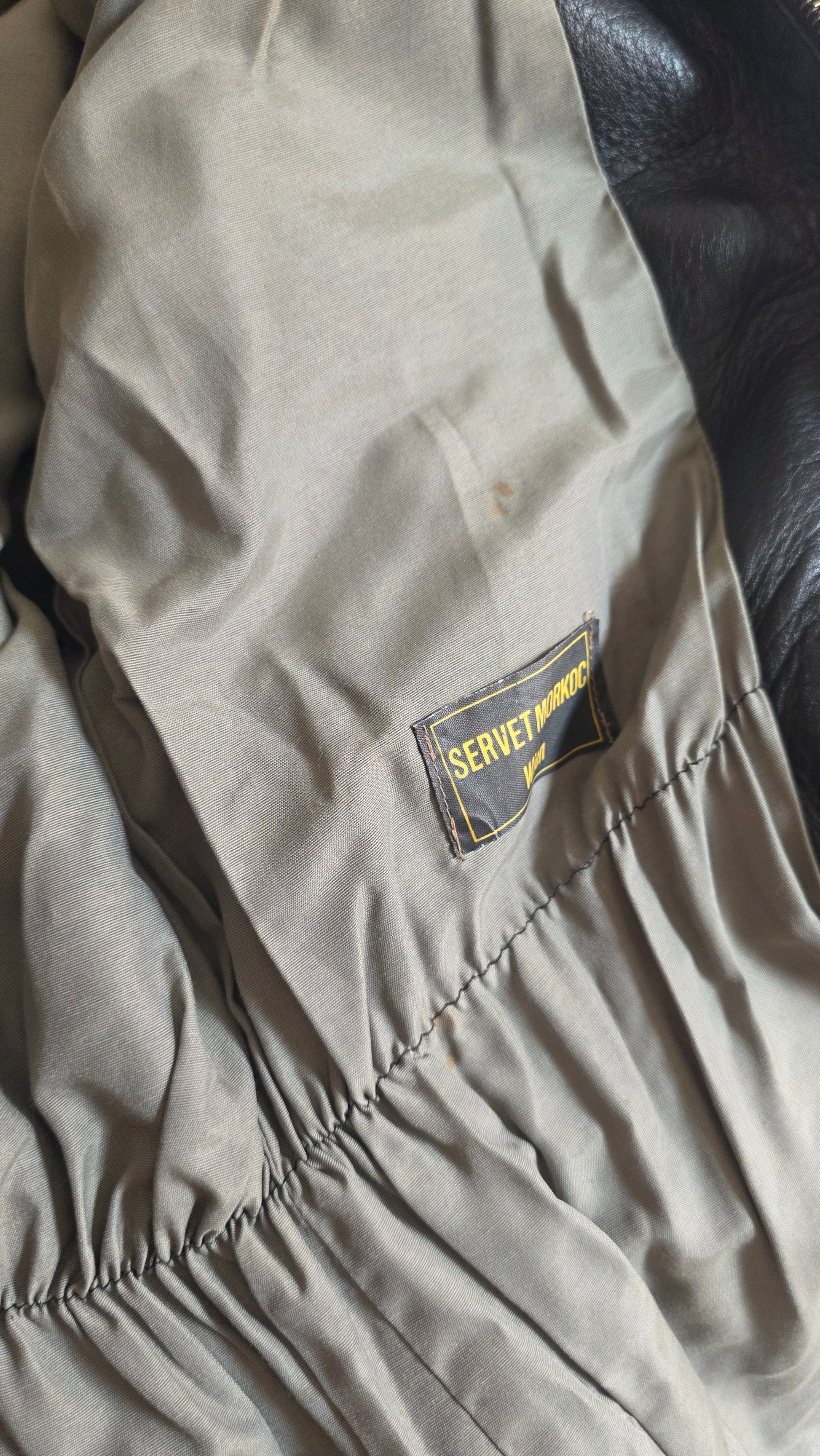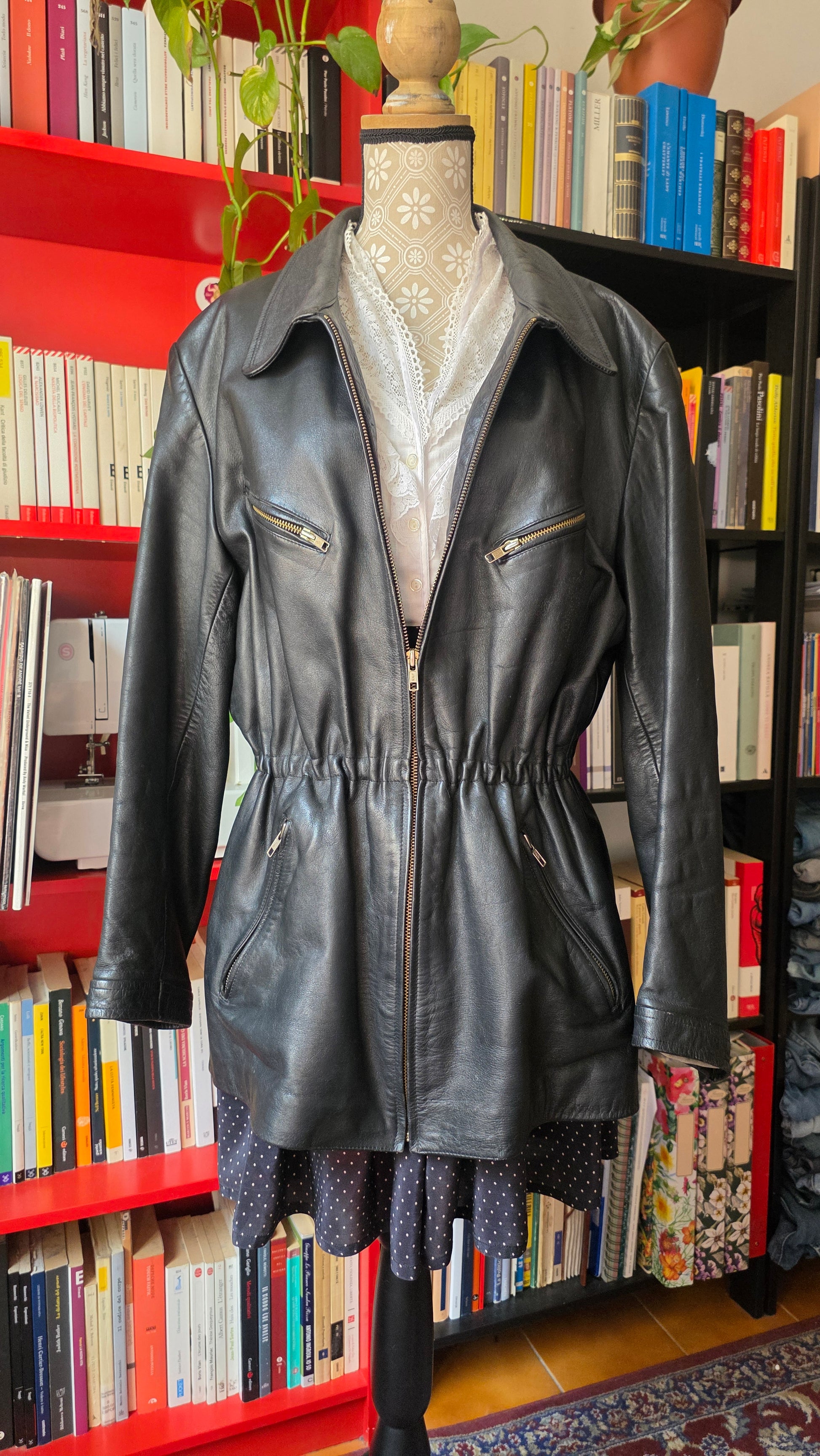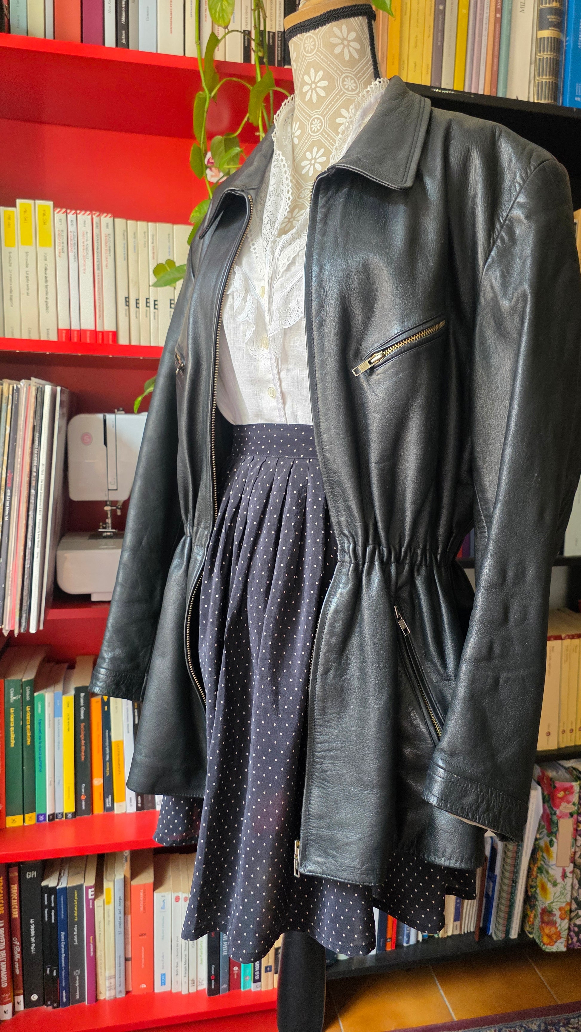 Di una fattura meravigliosa, veste fino a una L. Bellissima anche su taglie più piccole. Ha le tasche e l'elastico in vita. Presenta una macchietta interna - vedi foto - a qualche piccolo segno di usura sulle maniche.