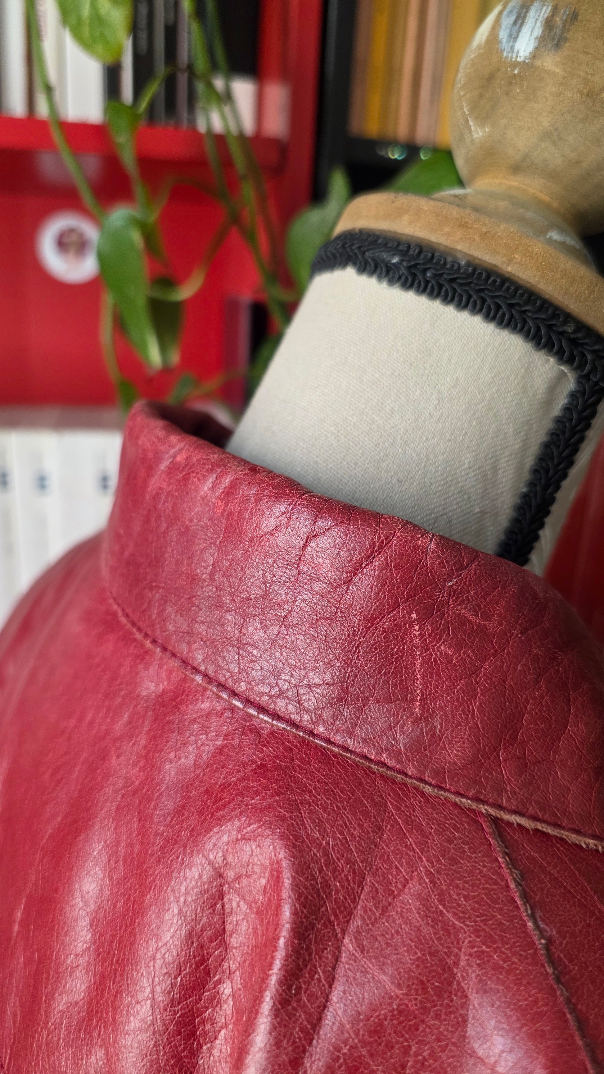 Taglio e colore stupendi. Segna una 42 e veste tale. Bellissima già su una S. Con tasche. Ha qualche segno del tempo ma no strappi o tagli.