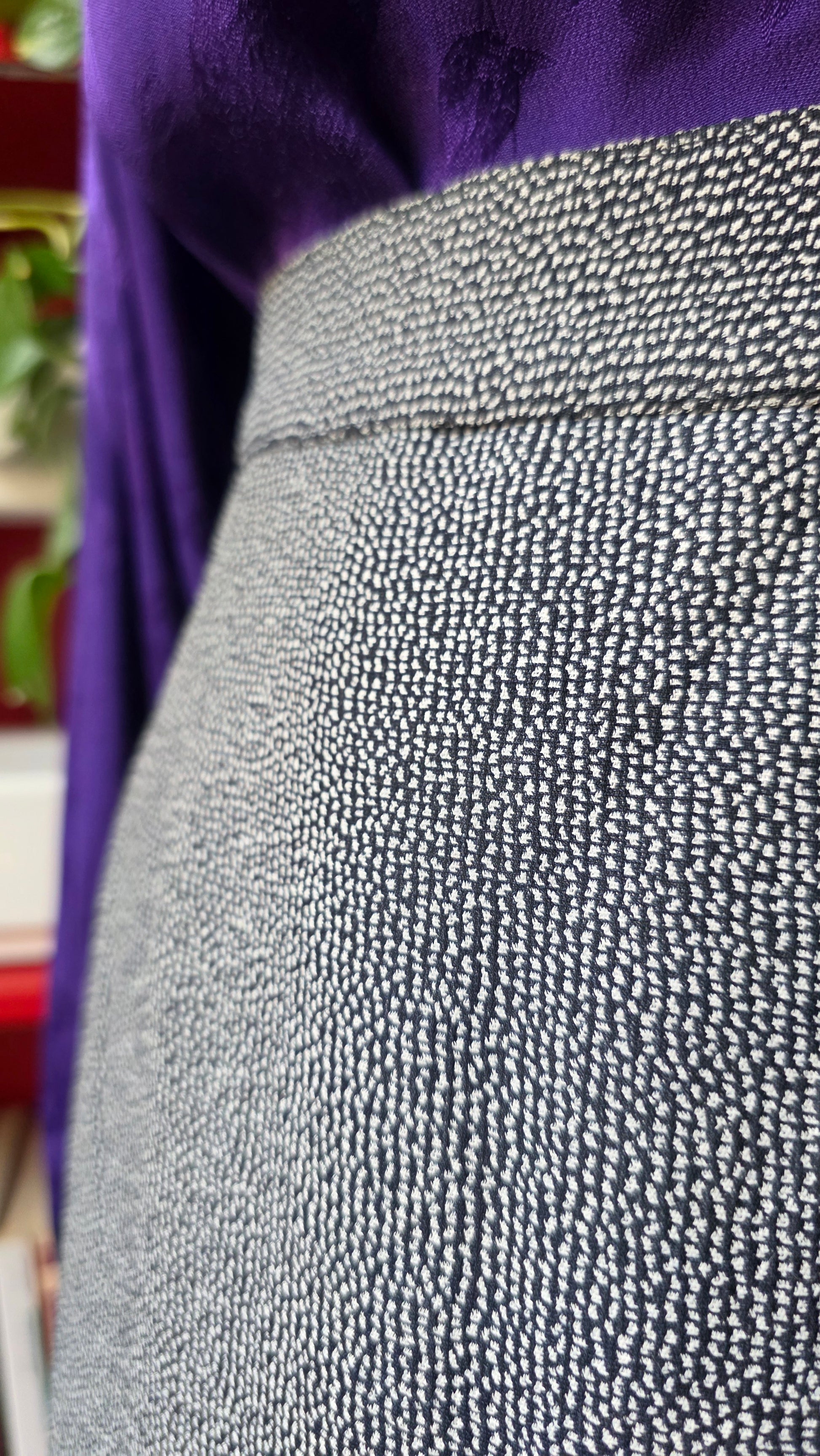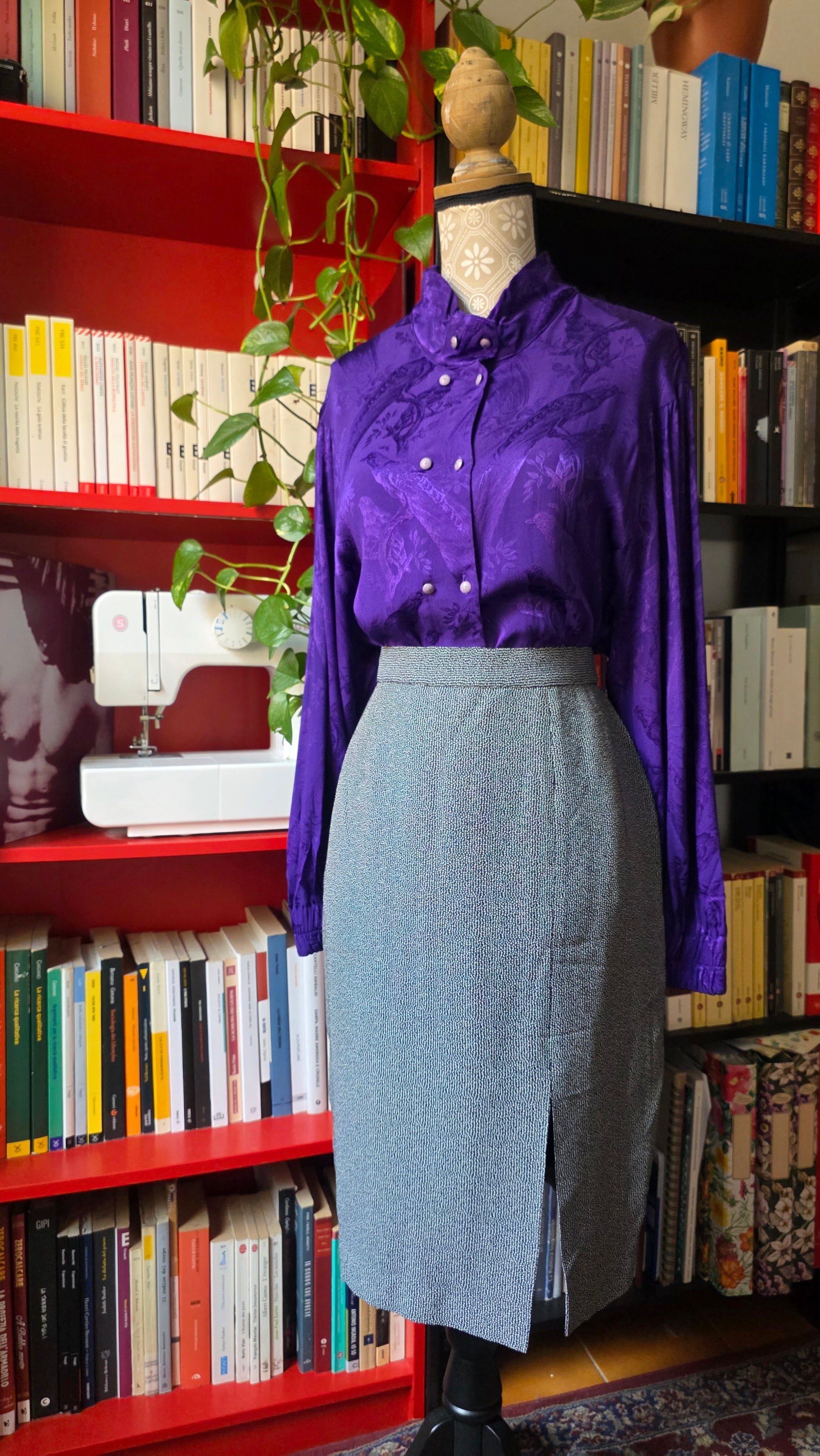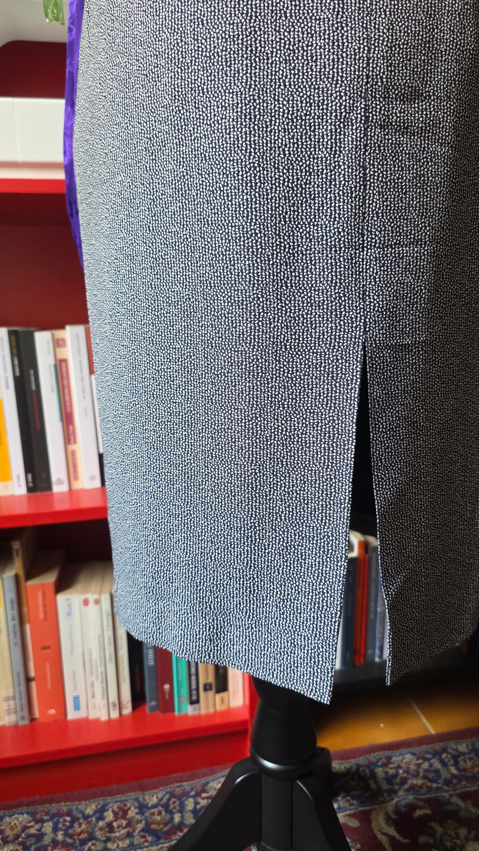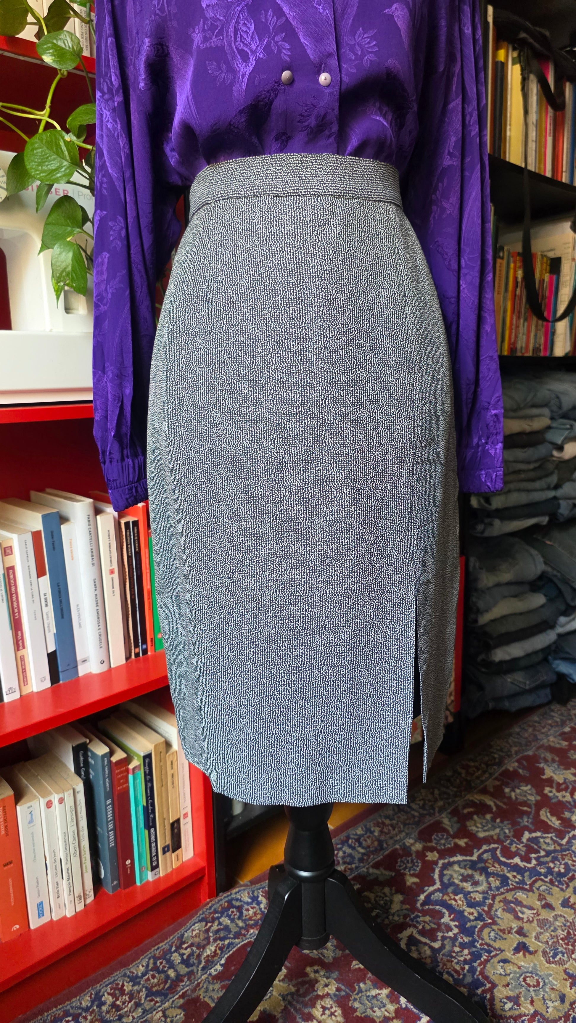 Made in italy, in acetato, viscosa e lana. Fodera interna. Vita 74 cm, fianchi 102 cm, lunghezza 57. Consiglio a una 42