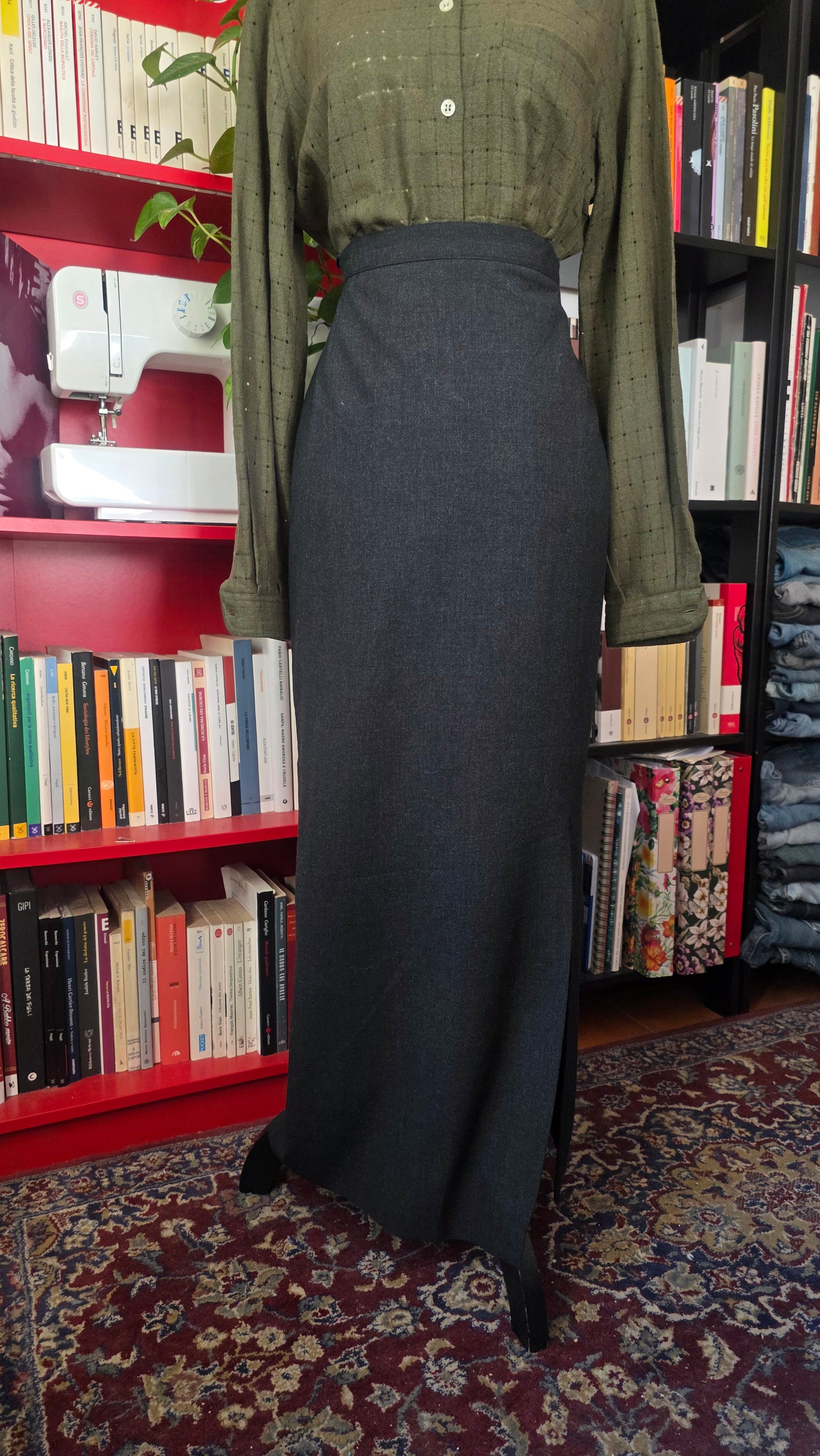 Vita 72 cm, fianchi 100 cm, lunghezza 95 cm. Consiglio a una 40 o 42 asciutta. Con fodera interna. Al tatto misto poliestere e lana, vestibilità meravigliosa. Condizioni perfette