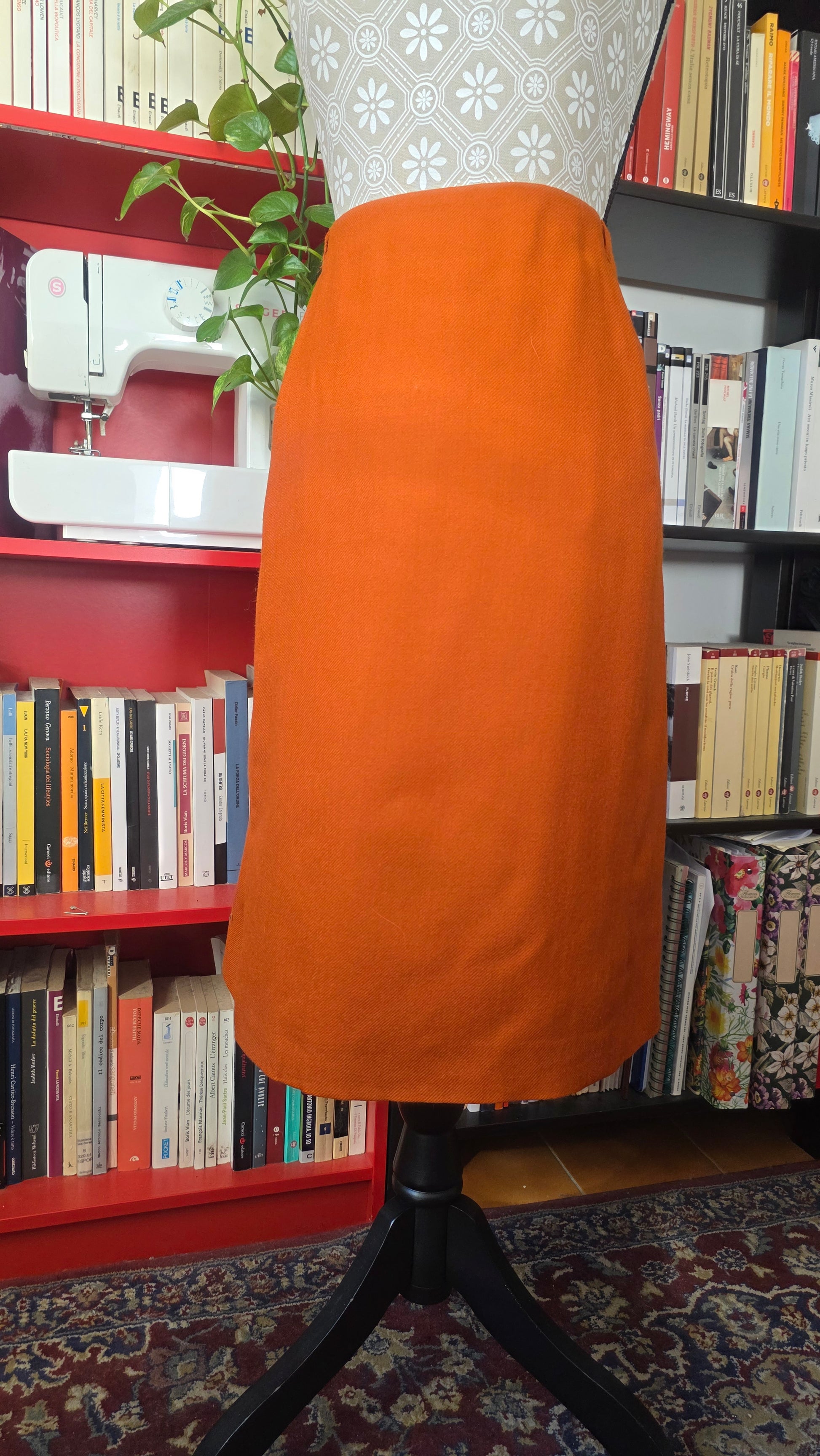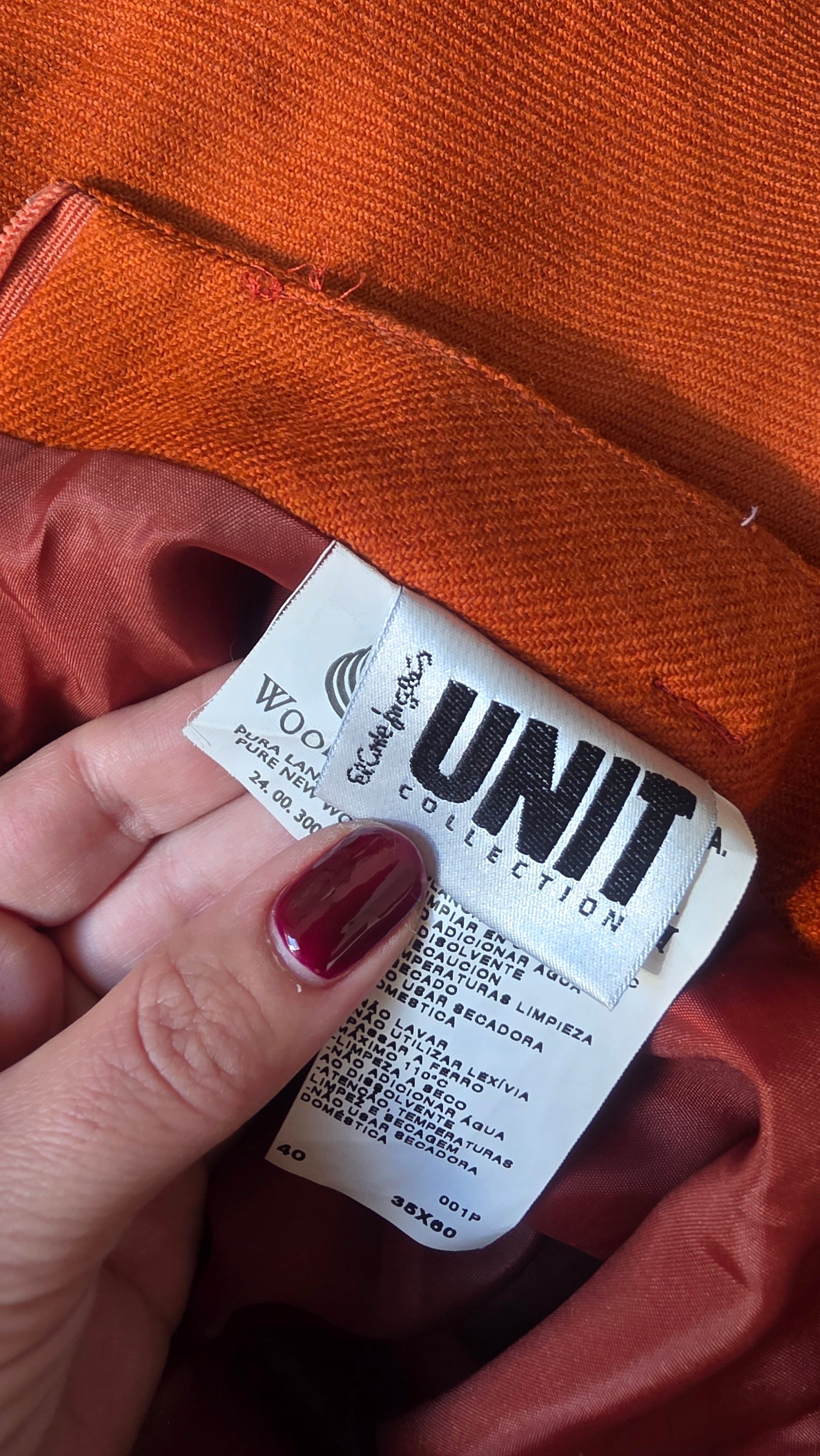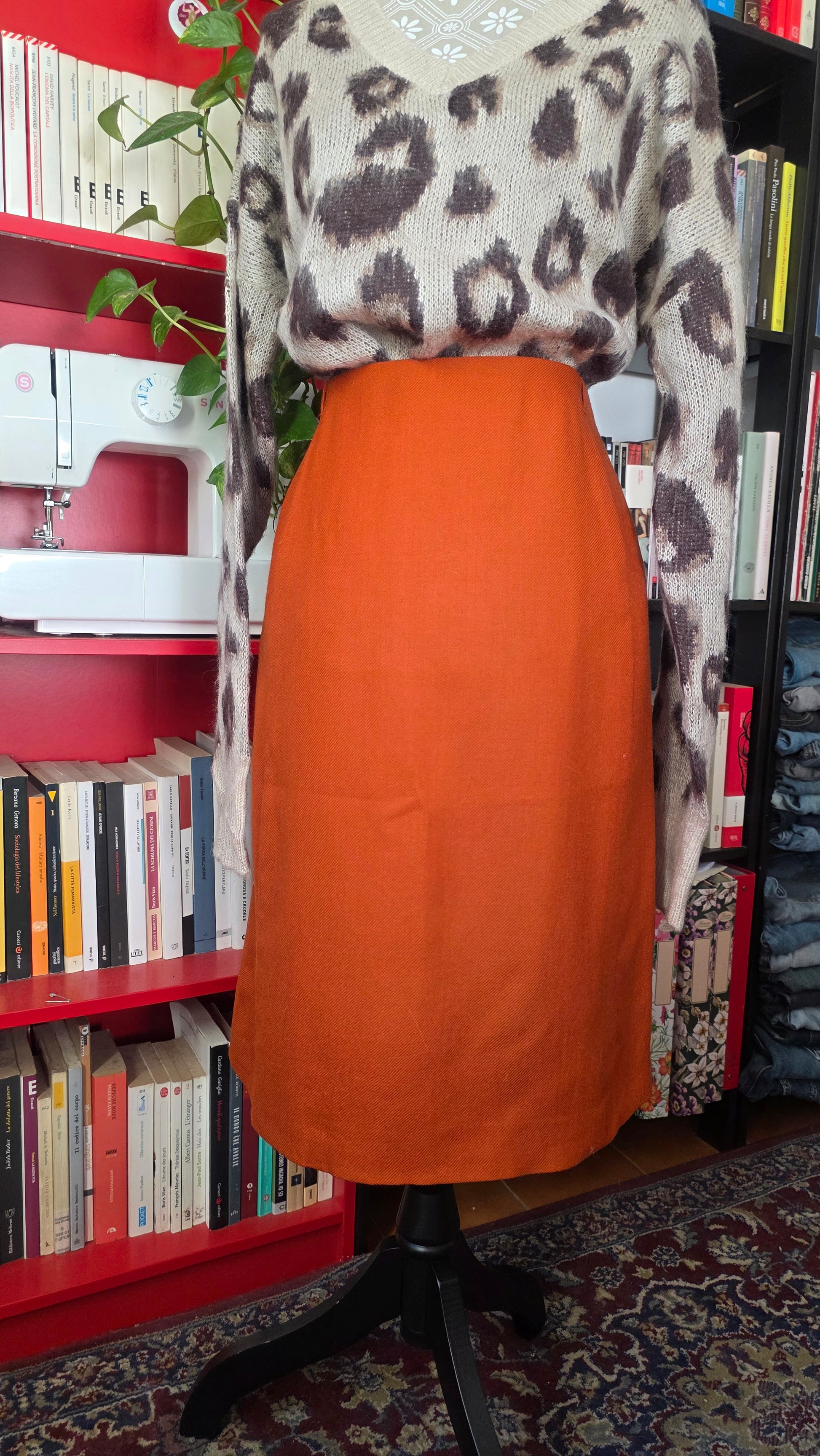 In pura lana vergine con fodera interna. Vita 72 cm, fianchi 102 cm, lunghezza 60 cm. Consiglio a una 42. Presenta un filo tirato, come da foto, impercettibile da indossato, il prezzo ne tiene conto