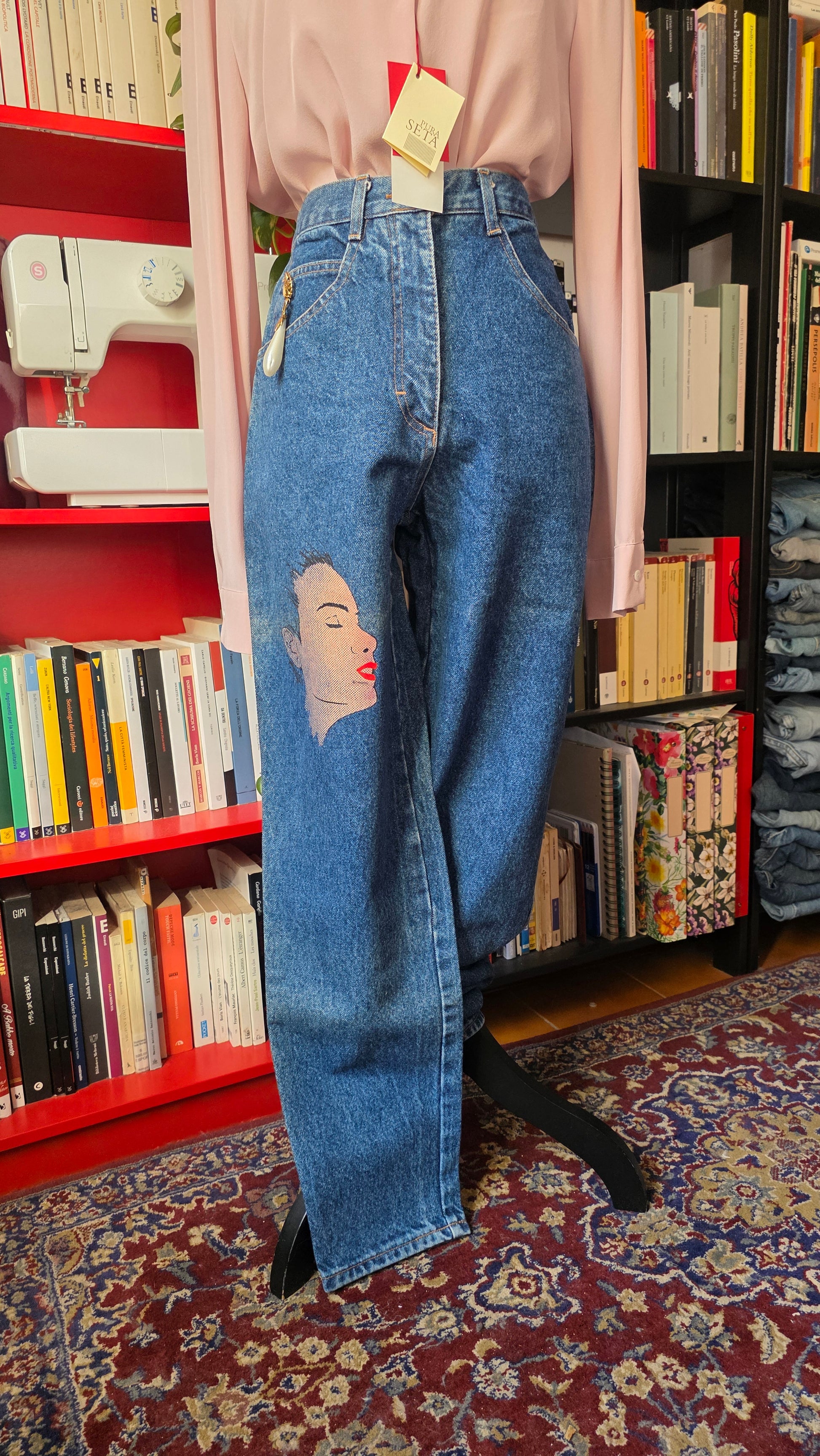 In 100% cotone. New old stock. Vita 74 cm, cavallo 31 cm, fianchi 101 cm, lunghezza 101 cm. Consiglio a una 42