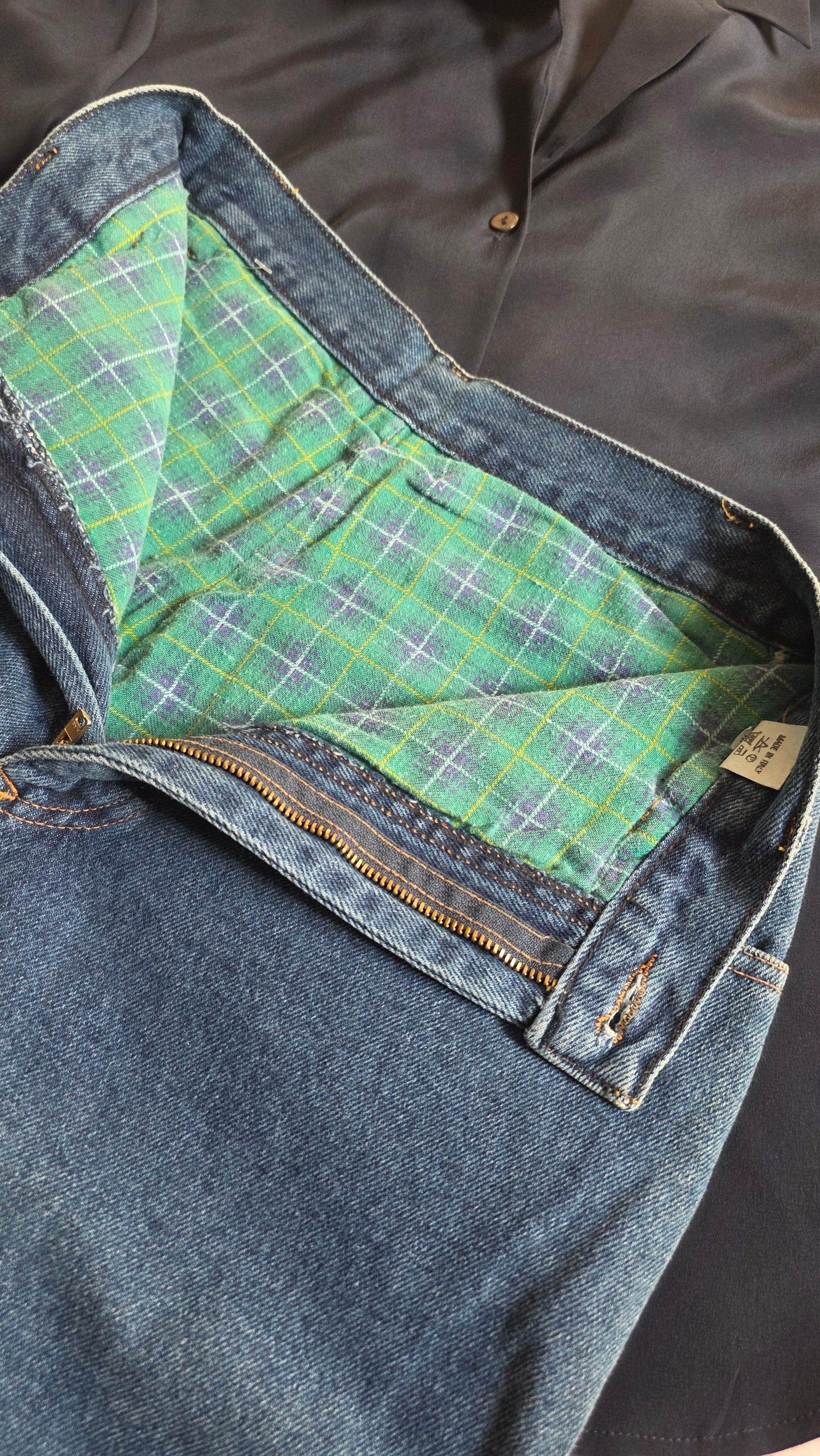 Vita 66 cm, cavallo 29 cm, fianchi 102 cm, lunghezza 96 cm. Consiglio a una 38. Foderato internamente. 100% cotone. New old stock.
