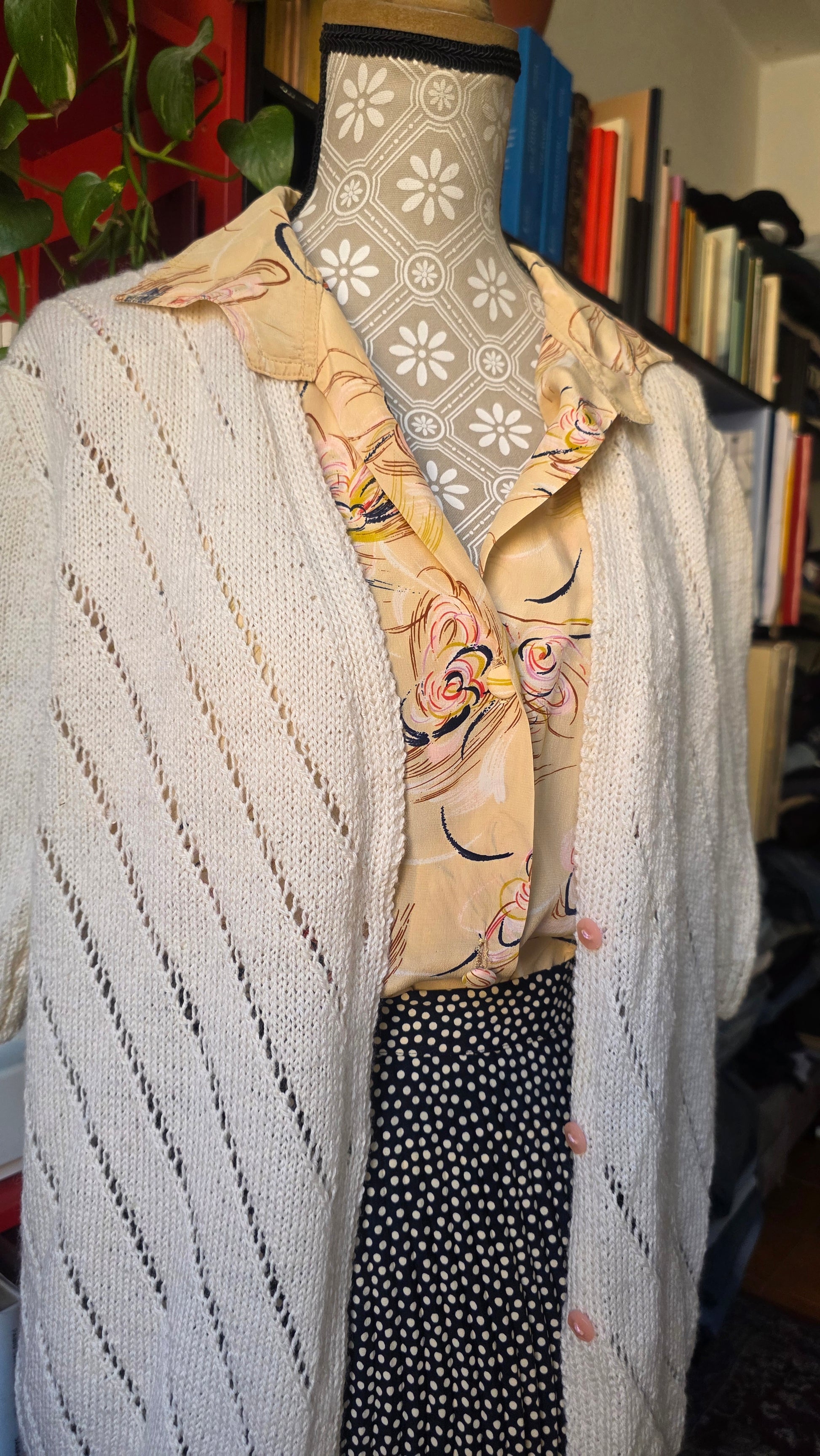 Fatto a mano, in ottime condizioni vintage. Nessuna etichetta di composizione, al tatto misto lana. Veste fino a una M abbondante