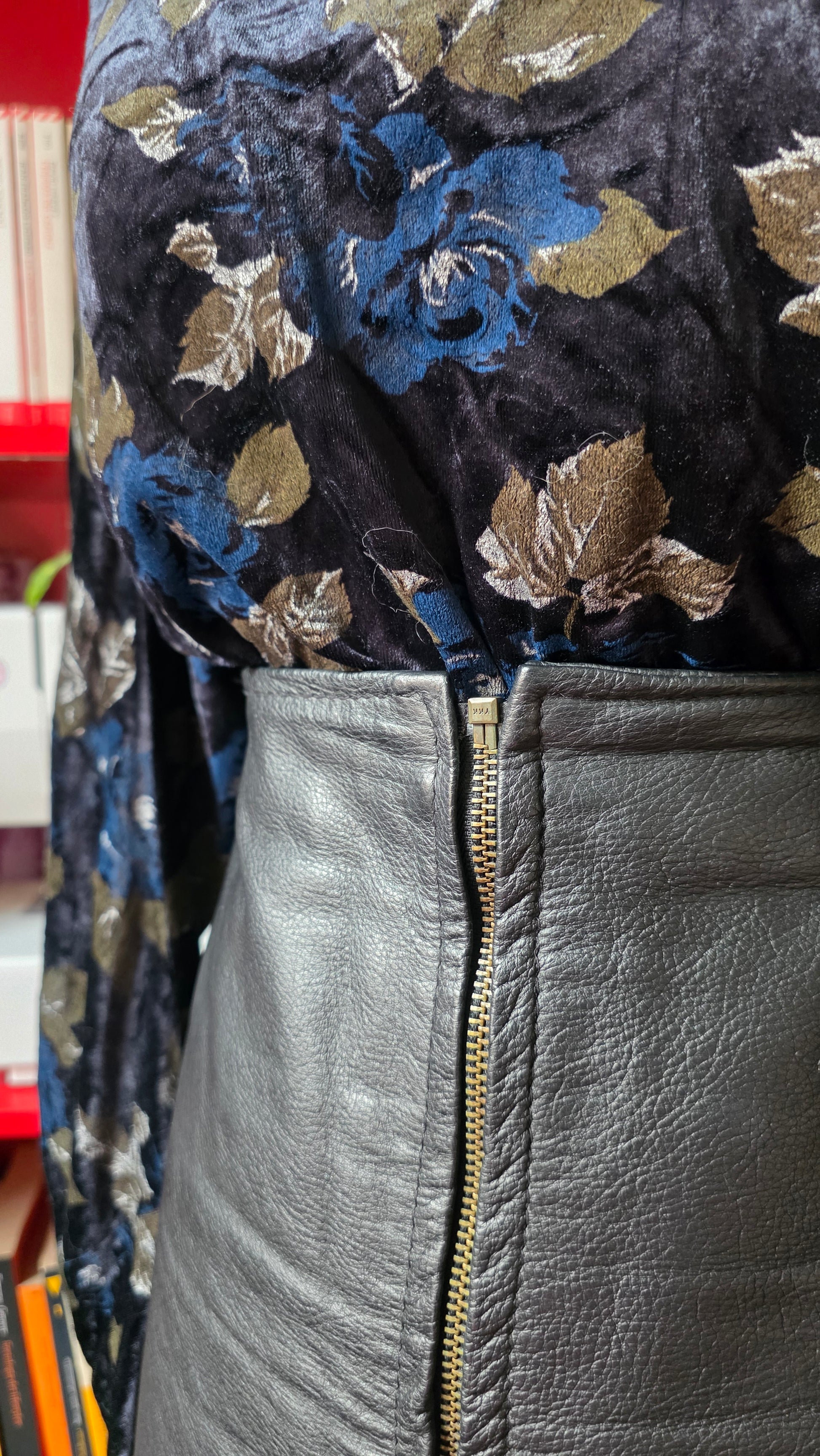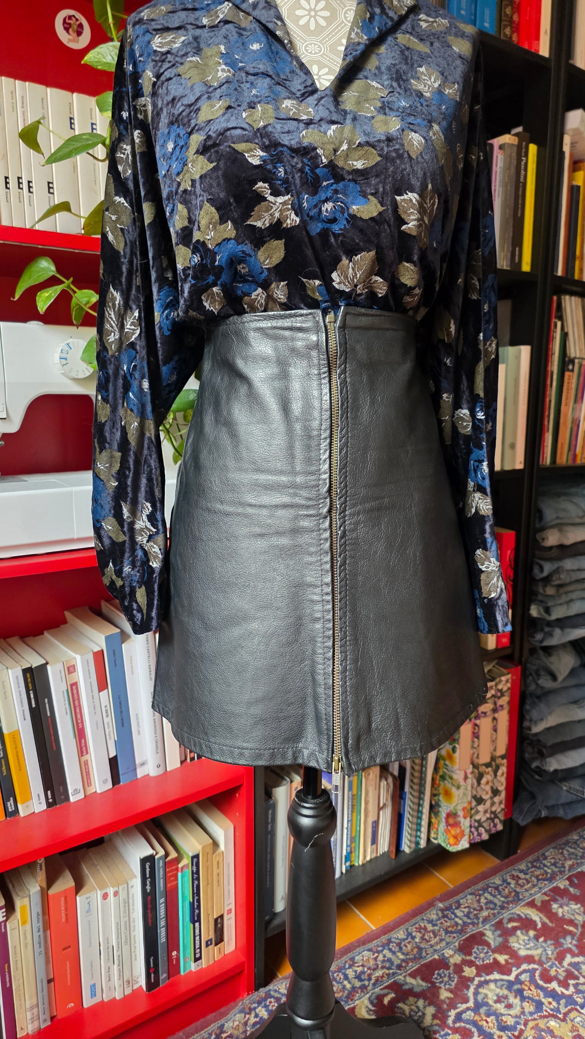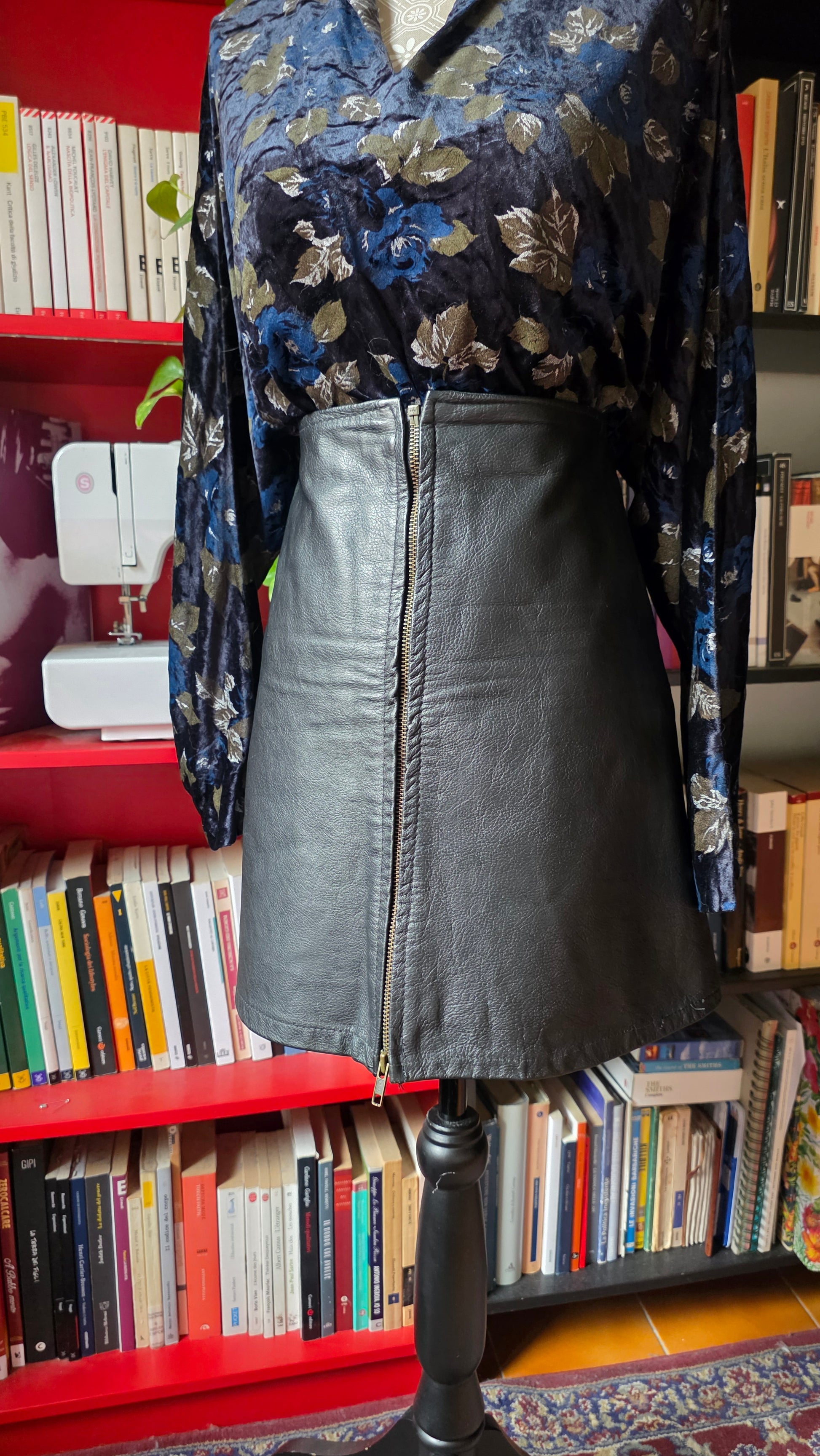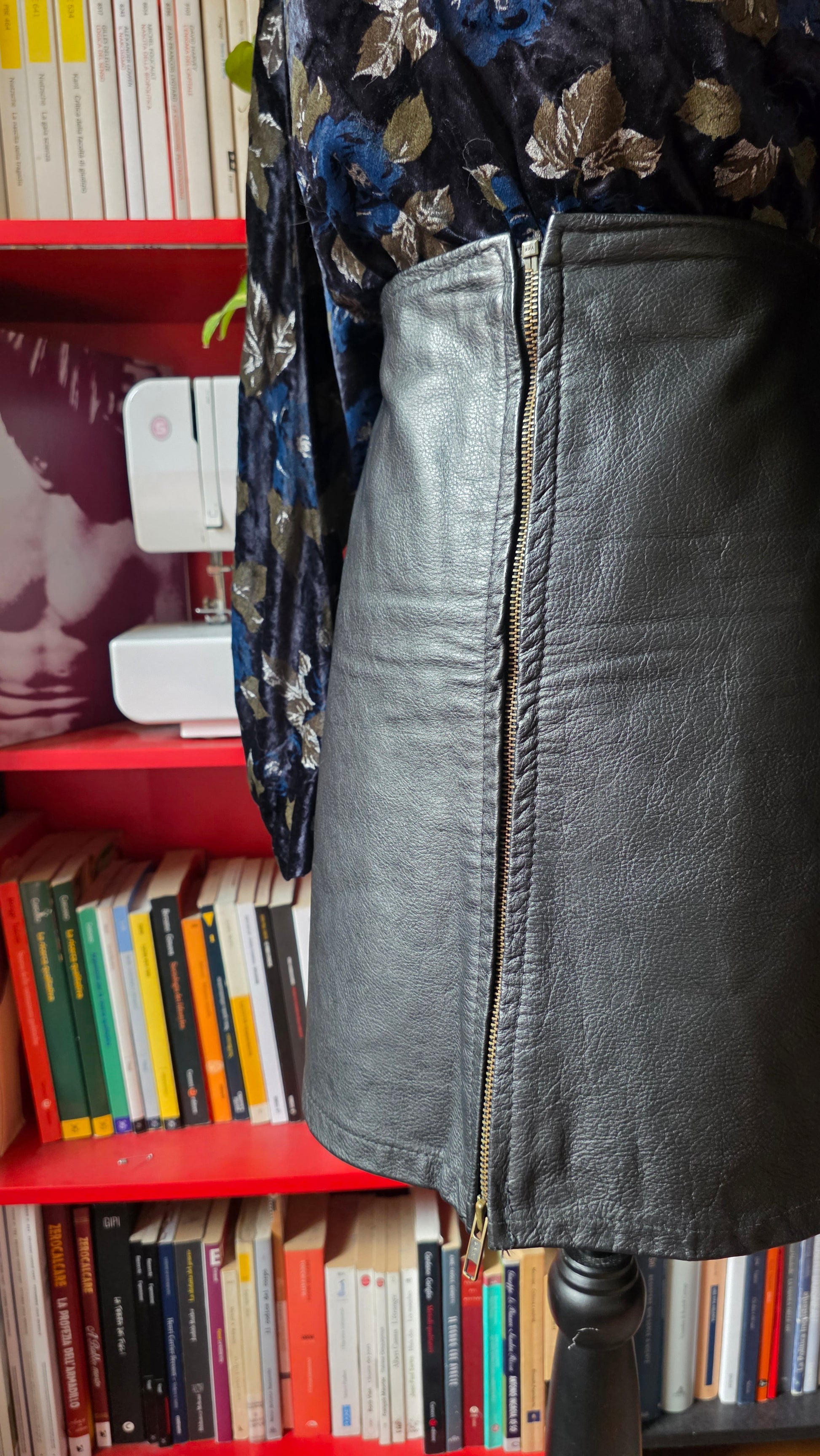 Produzione artigianale, vera pelle. Chiusura sul davanti con cerniera. Vita 70 cm, lunghezza 41 cm. Consiglio a una 40/s