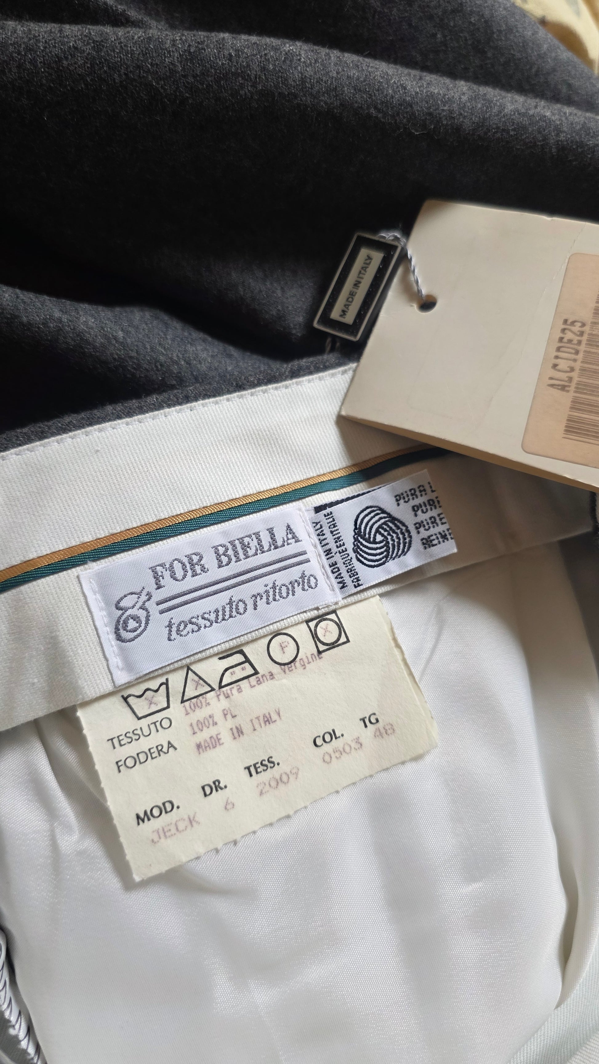 New old stock, fondo di magazzino, in pura lana. Di altissima fattura, modello maschile classico che ha un fit meraviglioso sul corpo femminile. Tasche sia sul davanti che sul retro, orlo libero, pinces.