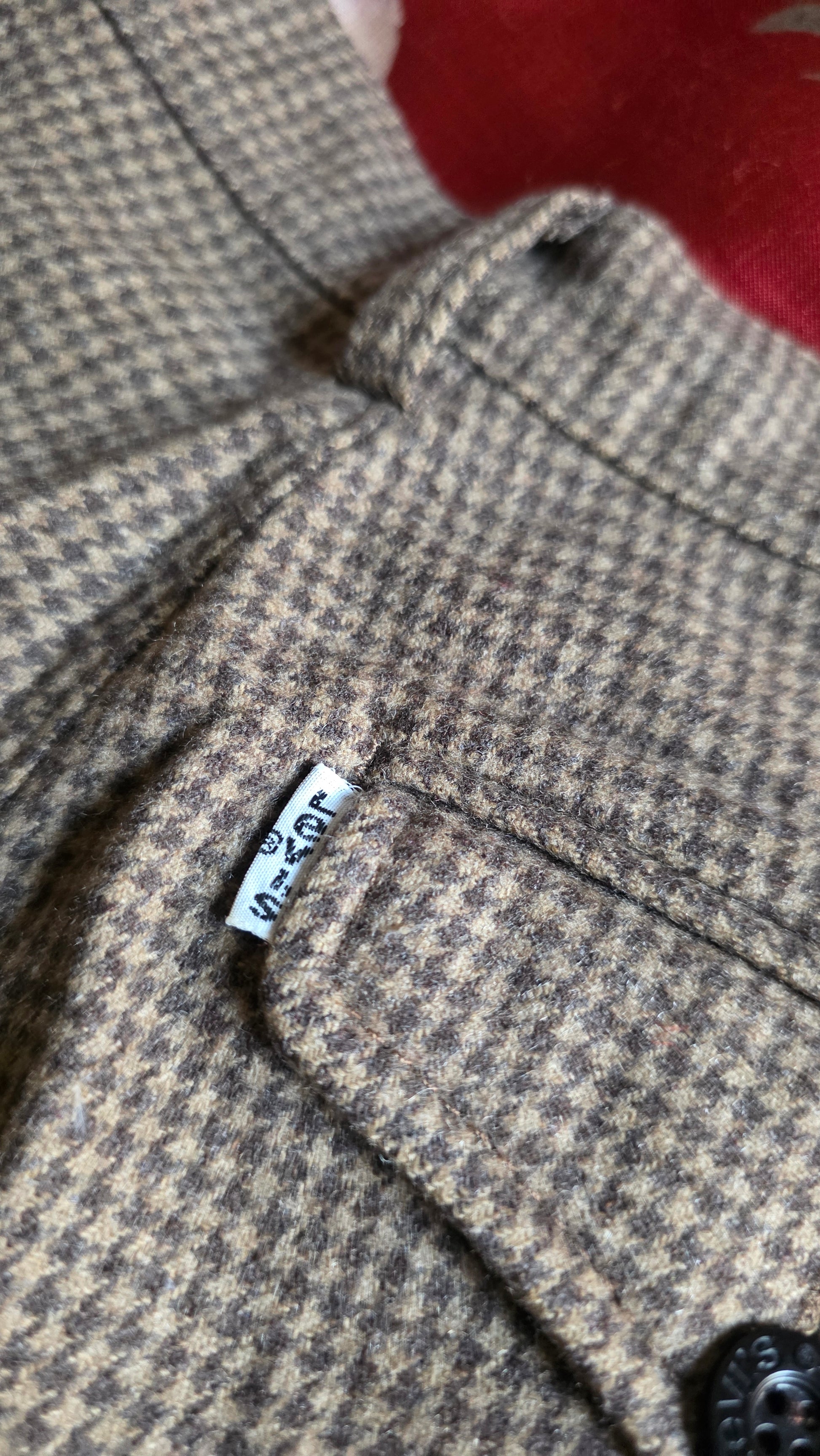 In lana, con tasche sul davanti. Vita 71 cm, cavallo 27 cm, fianchi 100 cm, lunghezza 104 cm. Consiglio a una 38 o 40. Condizioni vintage ottime
